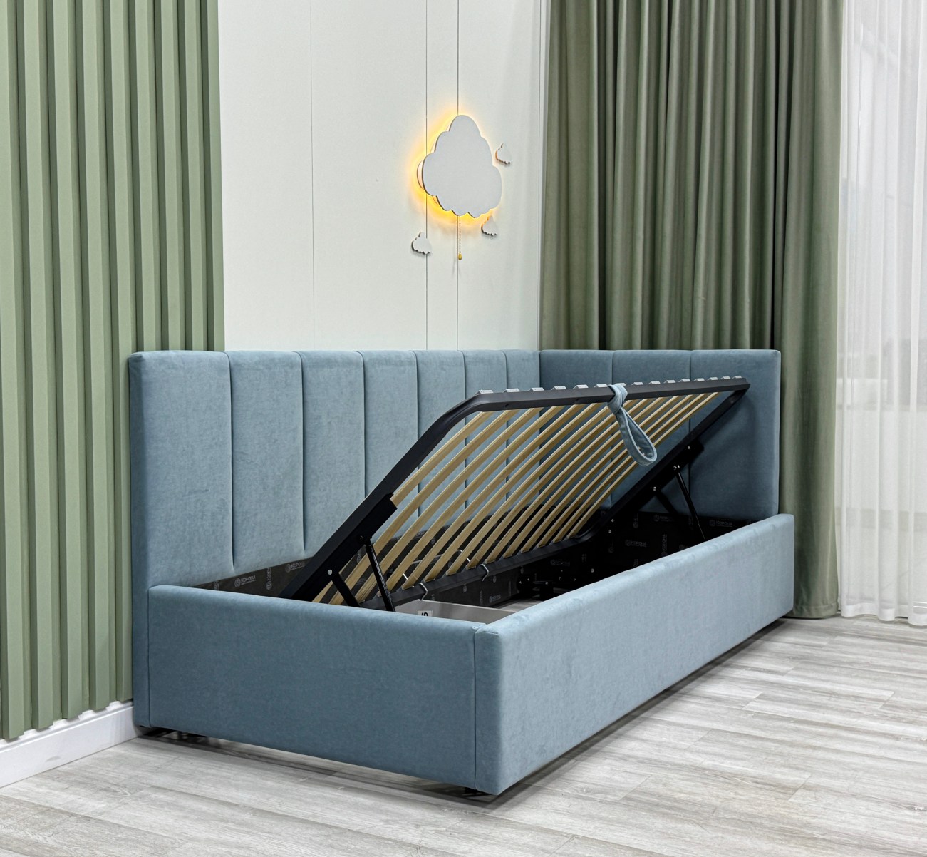 Обратите внимание, что кровать в базовой комплектации идет с логотипированной универсальной спинкой.