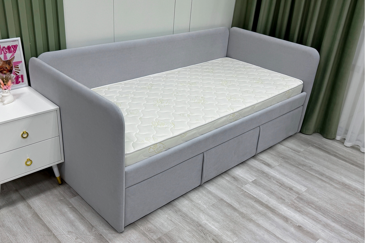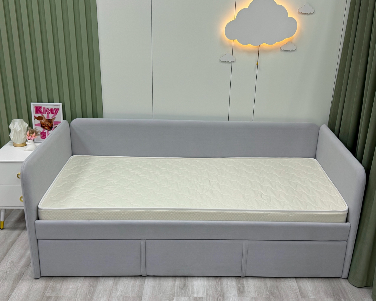 Трикотаж «Teddy» — это невероятно мягкая и уютная ткань с нежной, слегка пушистой поверхностью, напоминающей плюшевого мишку. Она создана специально для детских матрасов, чтобы каждый сон малыша был максимально комфортным и тёплым. Благодаря своей структуре трикотаж «Teddy» прекрасно сохраняет тепло, оставаясь при этом дышащим материалом, который поддерживает оптимальный микроклимат. Ткань гипоаллергенна, не раздражает нежную кожу ребёнка и устойчива к истиранию, сохраняя свою мягкость и привлекательный вид на долгие годы.